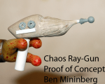 This is a prototype for an accessory I’m working on. I’ve got an awesome Armored Chaos Real x Head figure, and I thought he would look awesome with a ray gun to wield. Mutant Chaos is supposed to be a shape shifter, who uses his distinctive arm probe to sample other organisms to mimic, but I like to think that the probe can also double as a ray weapon of sorts. The Armored Chaos figure is a tribute to an old Japanese show hero, and looks like a form Mutant Chaos would take when things are getting heavy and the Mutants need some support. I figured he could shapeshift the probe into a ray-gun so he could still use it, but in the heat of battle, he might lose focus, and the ray-gun probe extremity would be the first thing to waver in form. The current piece is sculpted out of Aves Apoxie-Sculpt over a plastic tubing armature, with some styrene-strip details and some miscellaneous tank bits. The details still are not a hundred percent, as I want to refine the tendril-like texture of the gun, as well as add maybe a trigger or a bit more detail to the rear ray-gun bit. I’m thinking that if there’s interest, I could recast these to sell, with or without painting depending on what people want.