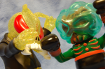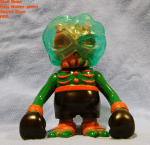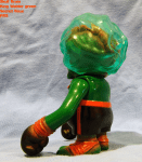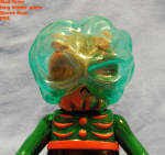 The early Secret Base fight figures were heavily inspired by the aesthetics of the Henshin Cyborg line, more specifically by the Walders. The King Walders were the enemies of the Cyborgs, and were clear colored figures with vinyl guts instead of mechanical innards. The Walder like included three evil original character costumes in vinyl, and are some of the most iconic vintage Japanese figures. It was only fitting, then, that some of the earliest colorways for the Skull Brain, the second Secret Base sculpt, were directly inspired by the King Walder figures. I got the green version in the mail today, and it is an awesome figure. The clear vinyl head and colors of the inner head mimic the colors of the green Walder and his Plantman evil costume, and look great. The outer head covering is actually made of super soft vinyl, which I was not expecting, but is completely awesome.