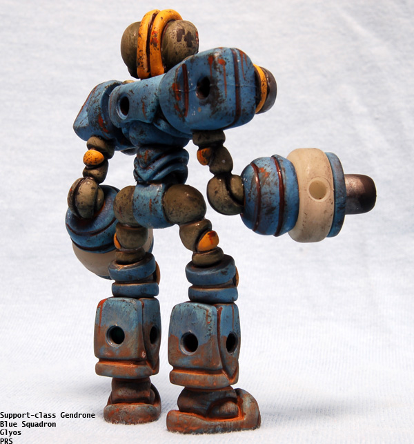 Gendrones are basically automatons in the Glyos universe. I like the idea of endless robotic soldiers, and it seems like any combat team must just have a stock of different Gendrones that are effectively disposable. This one has managed to survive for quite some time and seen some chop.