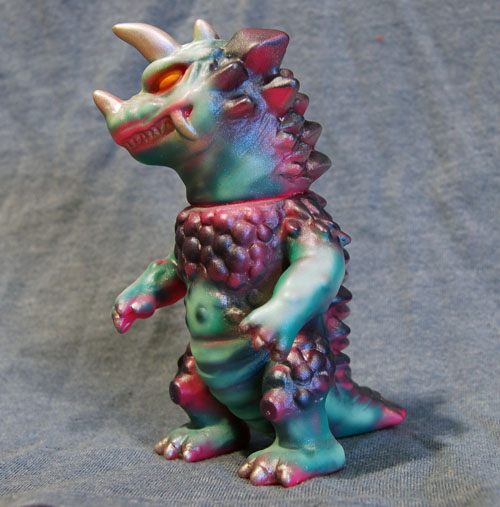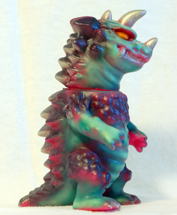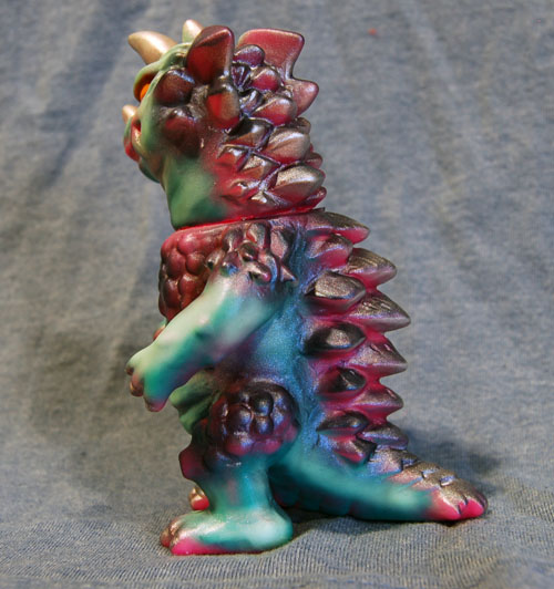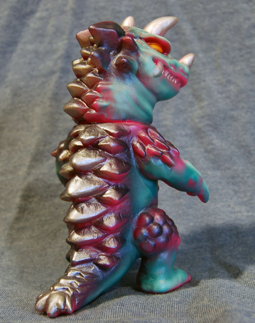 I have been having a blast getting to know the Monster Kolor paint system since this summer, experimenting with all sorts of crazy finishes and pearl effects, but I have been itching to get back to matte finishes and more ‘model’ sprays. I went for a vintage feel on this guy with flat colors and silver, but couldn’t help but use a metallic color on the spines. With a matte finish, the pearls give off this neat iridescence that I was really happy with on the Argus, without being overwhelming.