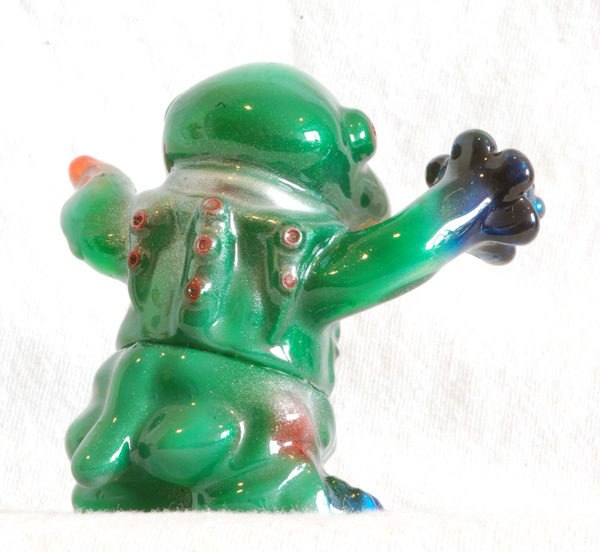 This guy is on clear vinyl, and most of the colors are applied thin so he still lights up on direct light.