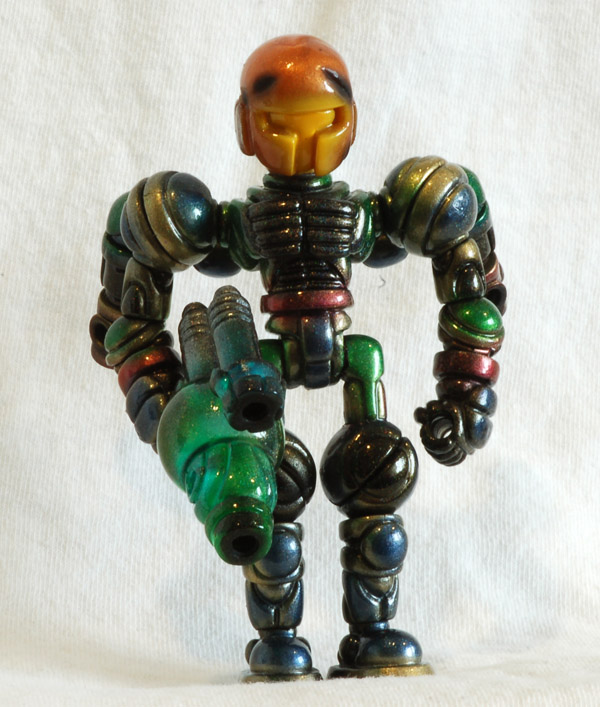This guy was a commissioned figure. I was given the special head, a Callgrim figure, and two packs of Axis parts and told to go nuts. In an attempt to use as many parts as possible I gave this guy a heavy blaster and a jump pack and good articulation.