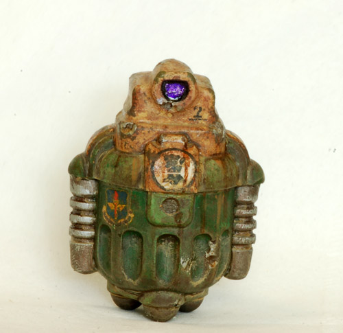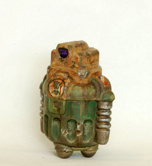 You HAVE to follow a green army robot with a tan one, so here is a desert-campaign Rundle officer’s assistant. The skulls on this guy were hand-painted, and I’m quite proud of them.
