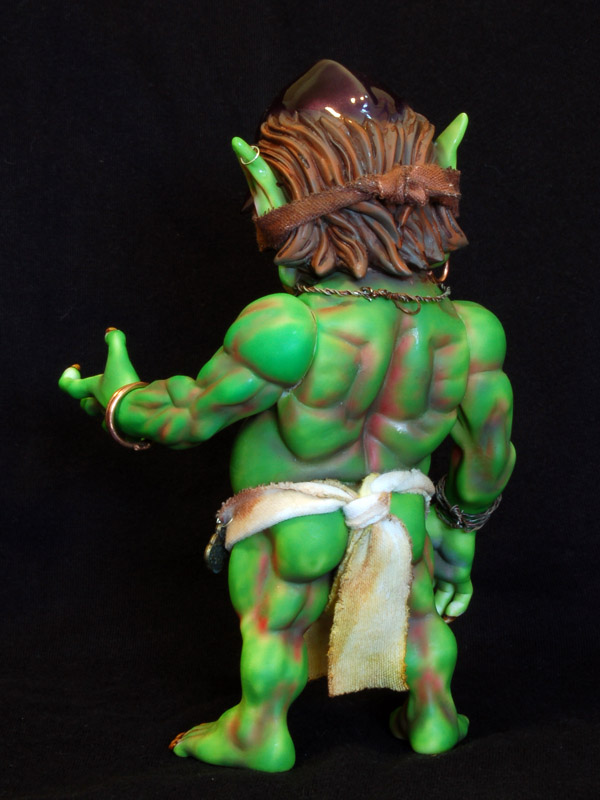I painted my Oni in a ‘realistic’ fashion as if it were a resin garage kit. All of the spray work was done with Monster Kolor, with the details done with acrylic brush work. Various accessories were scratchbuilt and attached, except for the medallions, which were found in the bottom of a bead display at the local hobby store.