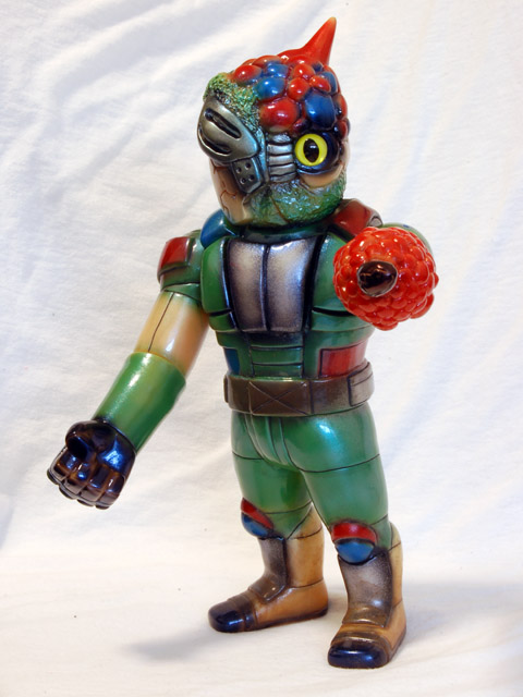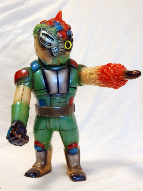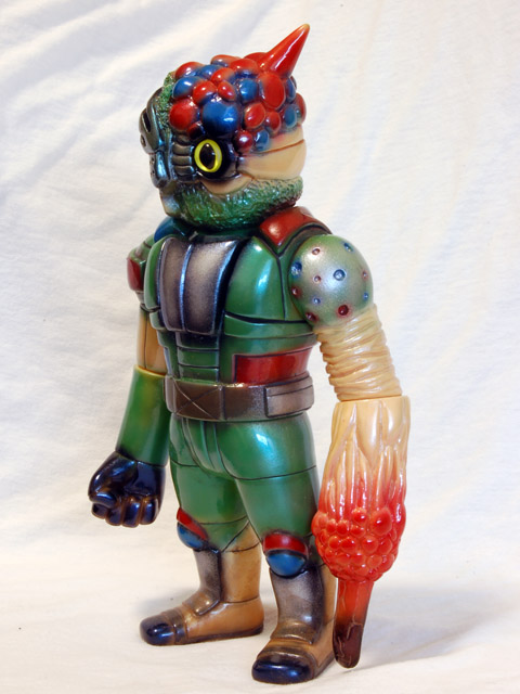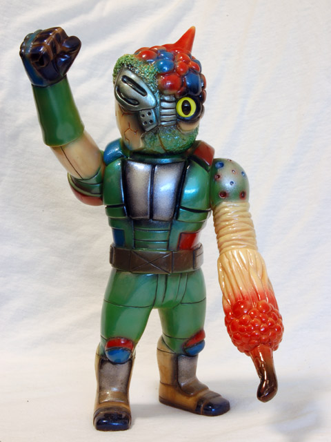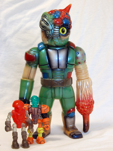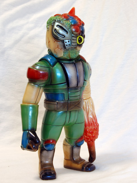The new Chaos Trooper sculpt from Real X Head blends design elements from the vinyl Adult Chaosman with Onell’s Glyos sculpts, in particular from the Chaos Invasion Custom Corps wave. The debut release of the new Trooper was on flesh vinyl, and I managed to pick up two so that I could get a Frankenruge version painted up to match my Glyos Frankenruge Trooper.