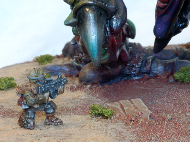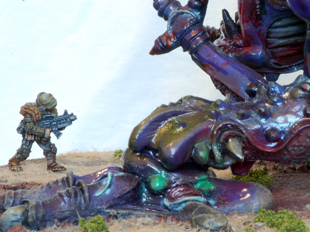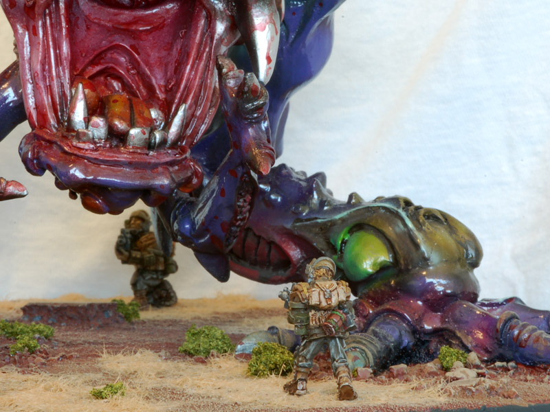 I knew I needed at least one human-sized figure on the base to show the immense scale of the Kaos Monster, and these guys worked perfectly.