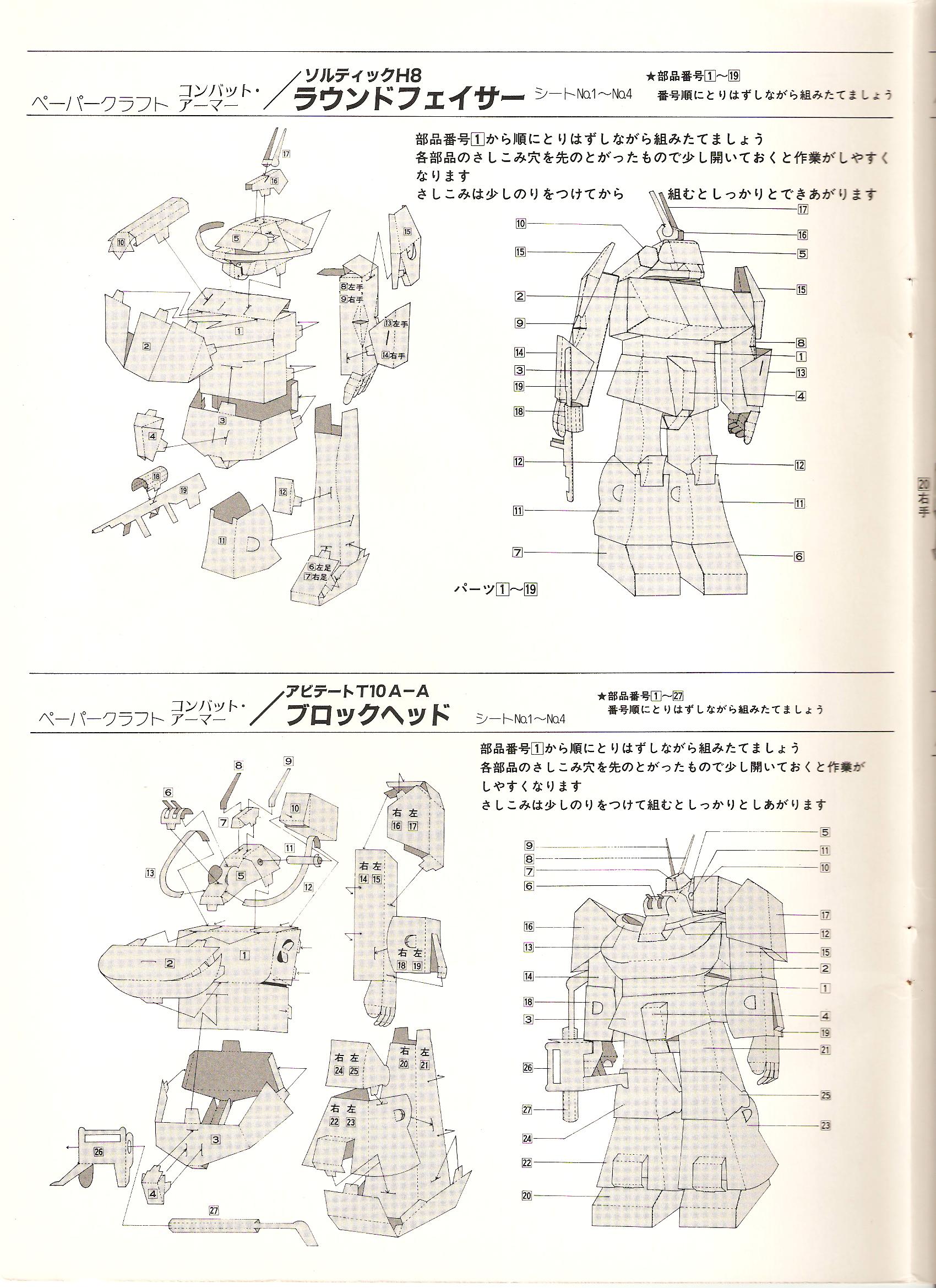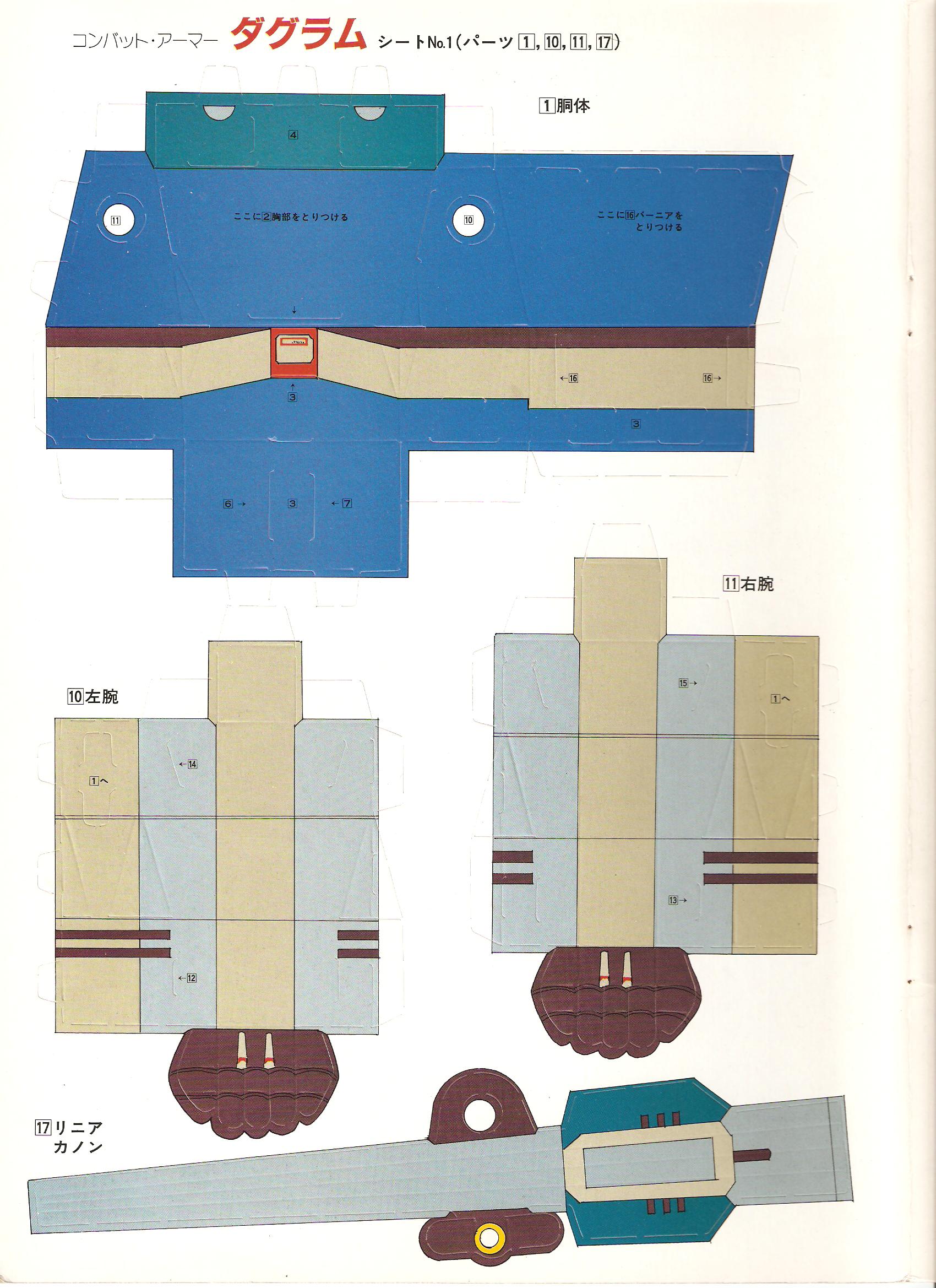 Someone asked if I could post the scans of the vintage Dougram papercraft kits, which were originally posted by Dougram fanatic machinesoldier over on ToyboxDX. He gave me the OK, so here they are.
