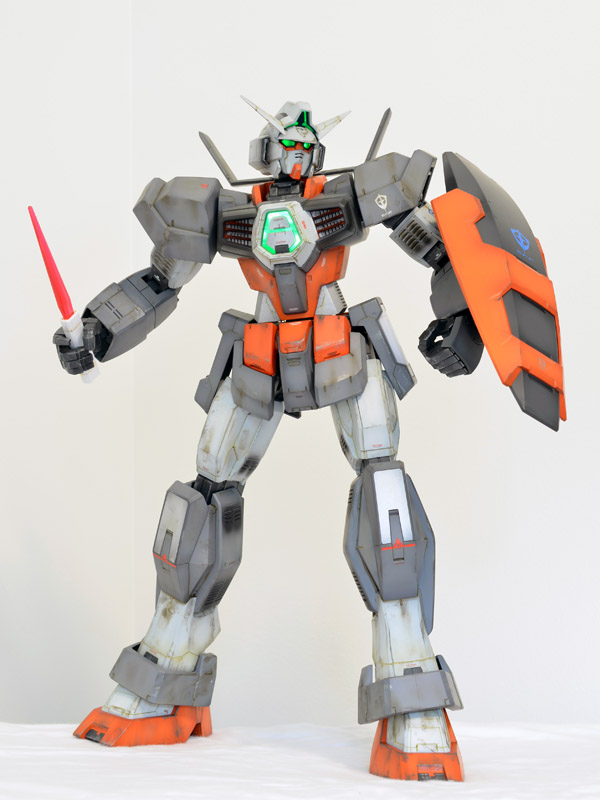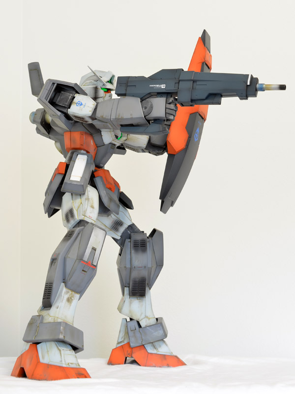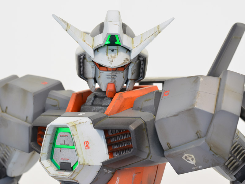 The AGE-1 comes in traditional Gundam colors, but it is a high-tech one-off machine in the show, so I went with a more subdued test type aircraft color scheme. This sucker drank up a ton of paint. The kit also comes with a nice sheet of waterslide decals that were easy to apply and went down smoothly. There is an LED mounted in the chest, with clear light-piping parts to light up the AGE Device in the chest, the eyes, and the head sensor unit. The piping works well, and the head parts glow well even when posed.