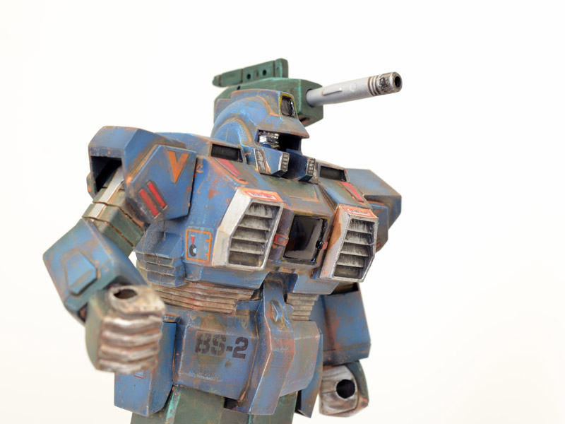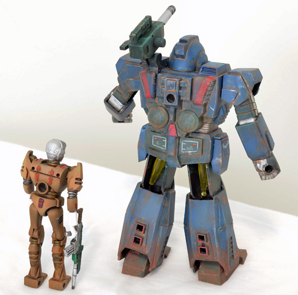 The Microman Bio Mechanic suits were model kits released at the tail end of the original Microman line and reissued by Romando in the 90’s.  You can read a thorough history of them at Microforever, but the sparknotes version is that they are chunky, rugged snap-fit battle armor kits for Microman figures.  This one started out life as the tan and brown Desert Filtered type, but I was on a blue kick when I airbrushed it a while back.  Microman is a pretty veteran toy franchise, so I went heavy with the weathering as if this unit had been there since the beginning.