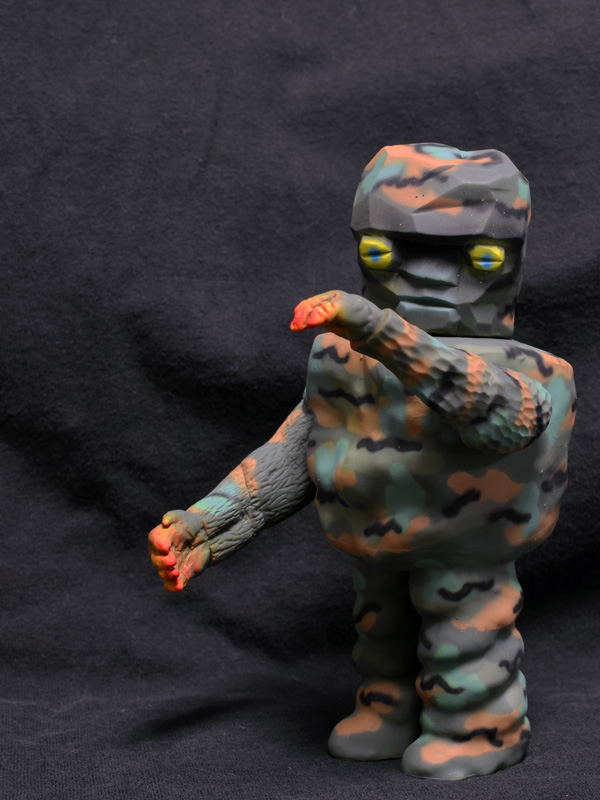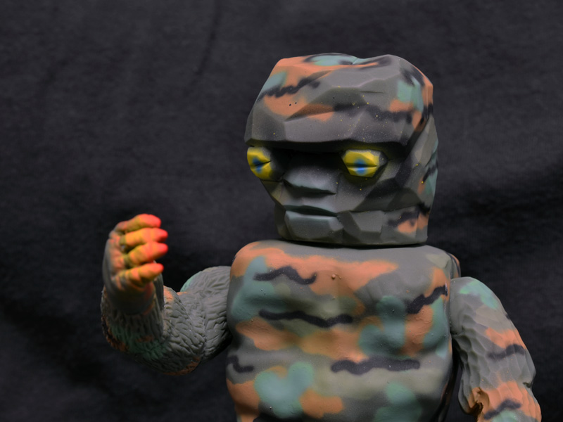 This guy was a commissioned I finished up a few weeks back. The customer sent me a swatch of camo in the style he wanted, and I think I did a pretty good job of matching it. We settled on a flat finish and very technical ‘tight’ camo rather than the loosey-goosey airbrushed camo some other kaiju guys have coined.