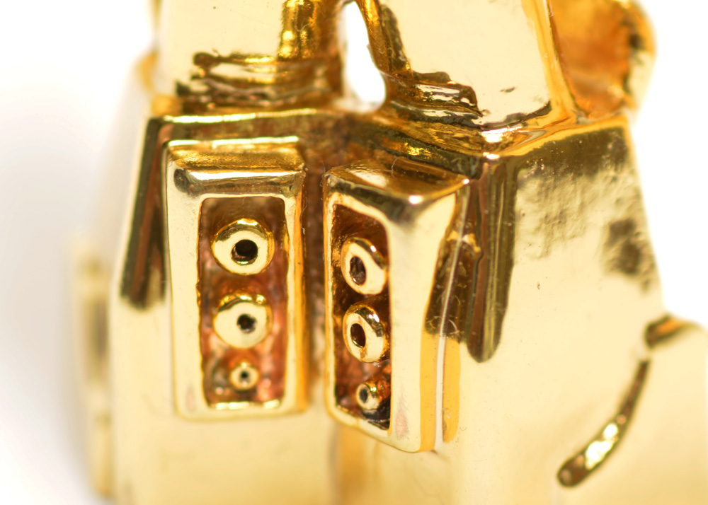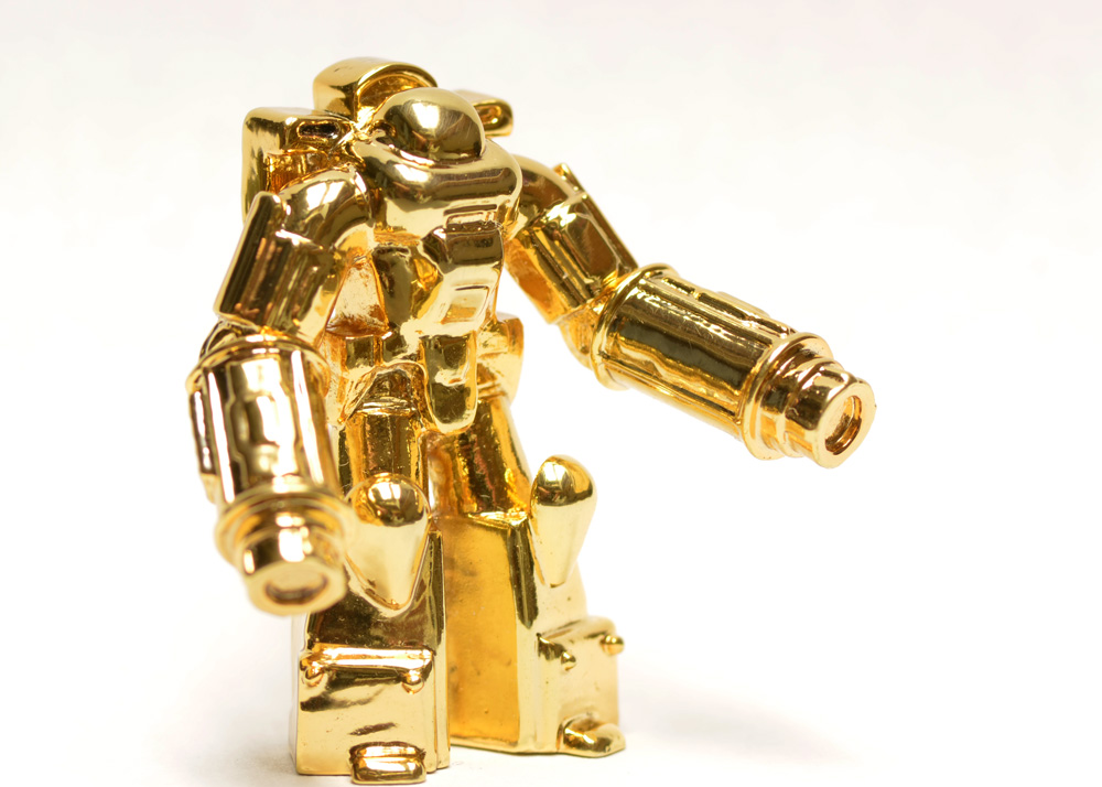 I don’t have anything to report yet on getting the Bounce Tortoise into resin because I ave been busy with work and commissioned models, but something amazing did show up in the mail yesterday. When I learned that Shapeways competitor i.materlise offer 3D prints in solid brass, I was intrigued. When I saw the example prints on their site, I knew I had to have one. The process for 3D printing to brass is to 3D print the wax and do lost wax casting. The result is polished and plated, with a variety of finishes offered. I went for the high gloss polished gold plating, and the results are stunning.