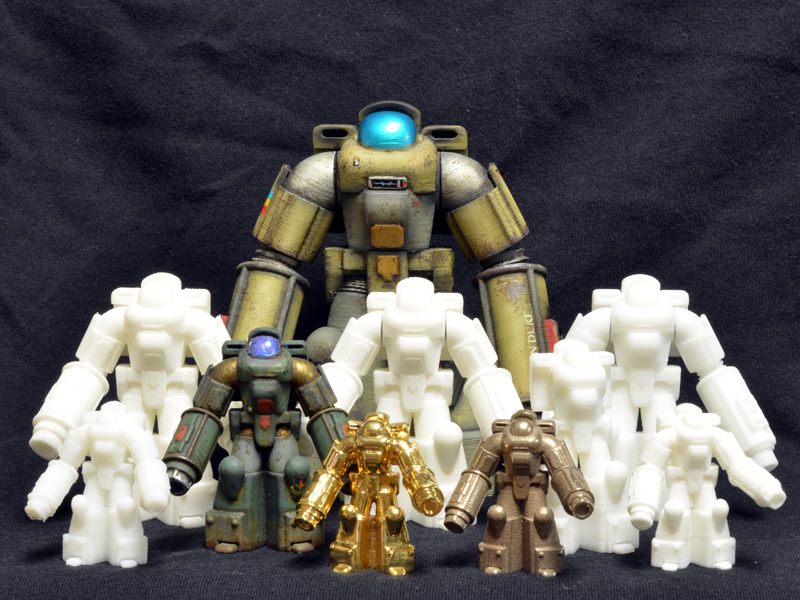 I’ll put up the rest of the pics of the big guy in the family shot to its own post. Under some paint, the lines begin to look like they belong there, and things are looking quite promising. Stay tuned for further developments as I push the abilities of the printer and my 3D modeling abilities.