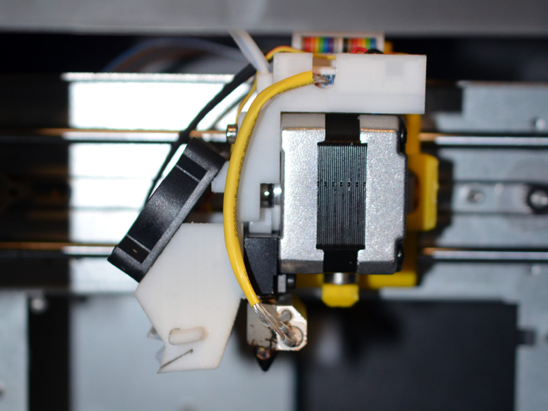 The Mini comes just about ready to use out of the box. The only assembly needed is to install the spool holder, the filament spool, and the print head. The whole print head is one assembly, and attaches to the machine via magnets. Three magnets securely hold the print head assembly from all three axes, and it snaps into place no problem.