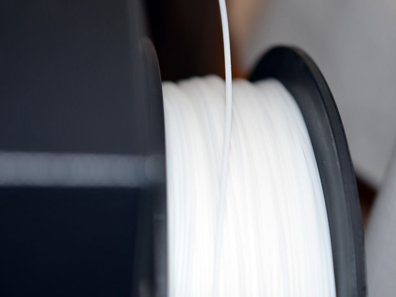 The printer includes one 700g spool of natural colored 1.75mm diameter ABS plastic filament. The natural color is a bit translucent and is fine for painting, but terrible for photographing.