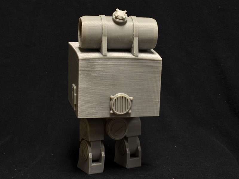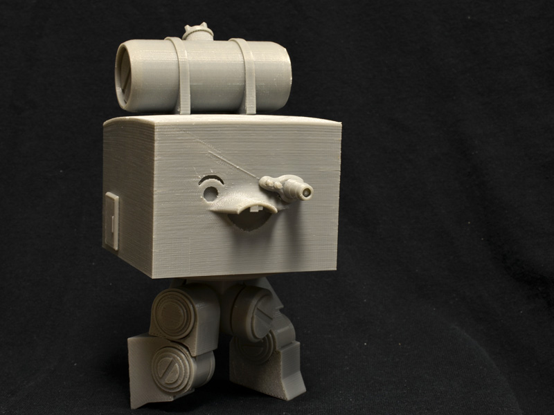 I made the feet a little bigger than on the official toy to help with balance, and came up with a couple little details to help differentiate my imitation Square^2. For a quick afternoon design to test the joints out, he works perfectly.