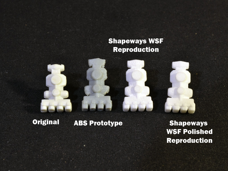 Once I was happy with the file, I uploaded it to Shapeways and ordered test prints in their White Strong Flexible polyamide material, and their WSF Polished material. I knew the Polished material would have a nicer finish, but I wanted to make sure it would still fit.