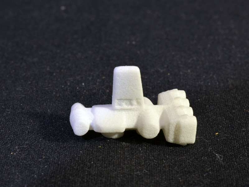 This is an extreme closeup shot of the tiny ship. The detail is not quite as sharp as the injection molded original, but at viewing distance it looks the part. The ship is also available in Shapeways Frosted Ultra Detail for the detail-minded collector. Visible here is the PRS logo on the fin, making it clear from a distance that this is a reproduction part.