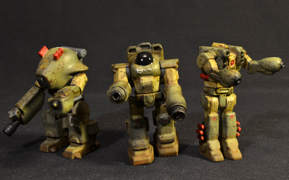 Here’s a trio of micro scale PRHI figures that were released at Future Factory. These guys are in some tried and true vintage Real Type colors, complete with red trim and details. I think there’s going to be more of this scheme on the larger figures in the near future! One of these guys is still available on the Monster Kolor Future Factory Store.