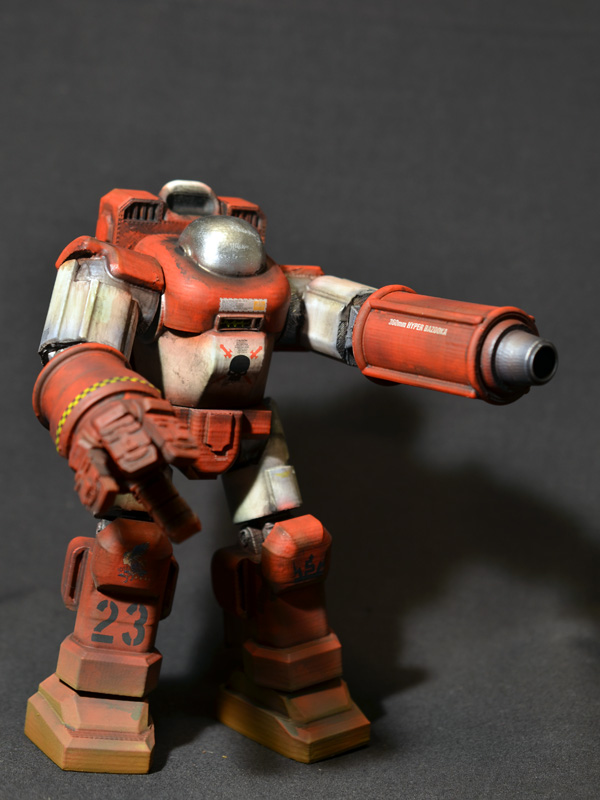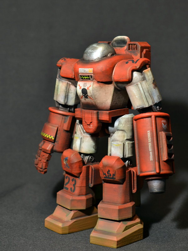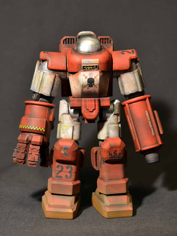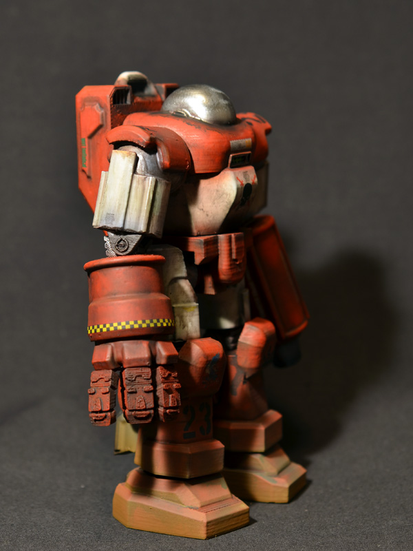 The Tenacious Toys and Monster Kolor Custom Toy Show opens at P!Q in Grand Central Terminal NYC tonight. The theme of the show was toys painted with Monster Kolor paints, and what would an MK show be without some real type, flat finish, weathered 3D printed mecha action? I was asked to participate and couldn’t say no. I was pretty short on time, but I was able to dig into my stash and piece together one last classic 1/12 scale Bounce Tortoise, the last of its kind. This Tortoise is from Brute Squad, featuring a red and white scheme where I tried some new tricks for adding color variation while applying the main colors, and a new acrylic wash mix that I’m pretty pleased with. The other thing I tried on this guy was to skip my usual chipping step. All the weathering here is a combination of airbrushed fading, color modulation, and washes. I’m pretty pleased with the results, and hope to see some great pics of the last Bounce Tortoise making its debut at the opening tonight!