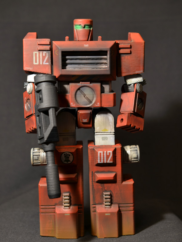 Another 3D printed Microman scale (1/18) CD-1-L Blockman figure has been added to the ranks! This one was a commission by a big Micro collector and friend of mine, looking to add some cross-pollinated SFLand action to his collection. This guy was painted at the same time as the Brute Squad Bounce Torotise, featuring similar techniques and finish. Painted with Monster Kolor and acrylics.