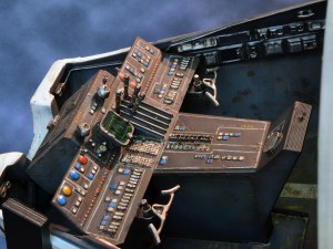 The panels all fit with some trimming and an unhealthy amount of superglue. You’ll see later in the process that this is where I made my main mistakes. First, I didn’t account for the light bars that run between the side panels and had to add those later. Second, I should have trimmed each piece to fit but not installed them so I could paint each panel flat on my workbench. The end product suffered because I had a hard time reaching into the cockpit to paint all the console trim and details.