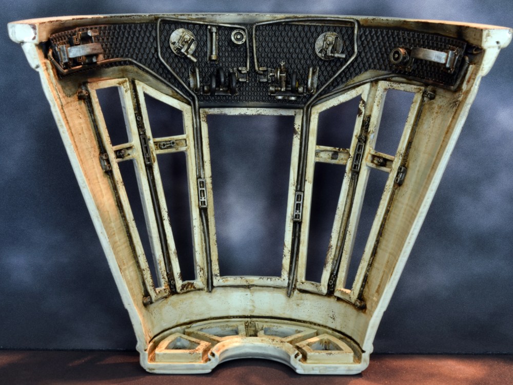 The final details to make were replacing some fragile bits on the center console. On the original kit the control yokes and those tiny levers were all one piece as part of the control surface print. This is really dumb. Most of these tiny bits were broken off because of course they were, being tiny details printed at odd angles. The new yokes are printed for maximum strength, aided by the acetone process. The levers are printed in resin and fully hollow so I could run a steel rod through the entire length and into the console. They’ll never break and I left them unglued where they fit so there’s a little play when setting up figures.