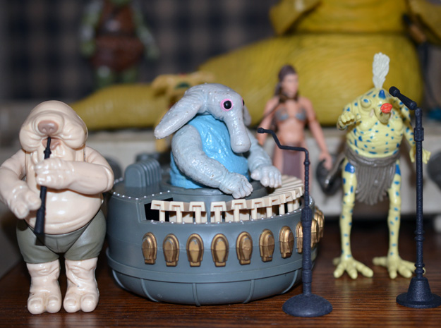 After that are some new replacement parts for your vintage toys. All of these are clearly marked with a PRS logo on each part for easy identification. First up are accessories for Sy Snootles and the Max Reebo Band, performing exclusively for Jabba the Hutt! Both the skinny and thick microphone stands and the flute are available separately, each in Premium Black and metallic finishes.
