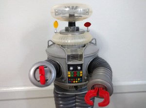I recently picked up the incredible vintage Masudaya Robot YM-3/B-9 1/5 scale talking vinyl kit from Lost in Space at a local comic show. It’s a gorgeous kit that I quickly build up, but the claws that come with the kit are a letdown in accuracy compared to the rest of the kit. I designed a simple, drop-in replacement part that is more screen accurate and fits your robot without any modification, available in red (and other colors) plastic now from the PRHI Shapeways Shop. You could potentially cut the claws apart at the middle and make them articulated the same way the stock kit parts work, or leave them as-is for a no-effort upgrade to your trusty bot.