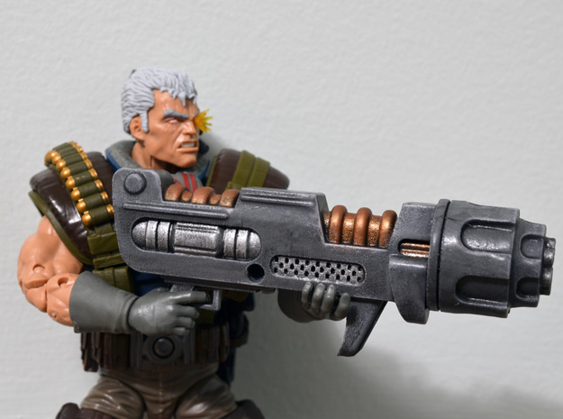 More new 3D printed blasters for your 6″ action figures are up on the PRHI Shapeways Shop! First up is big mac-daddy blaster for the recent Marvel Legends Cable. He comes with a decent over-sized impractical gun already, but mine matches up with the classic Toybiz figure’s ridiculous weapon.