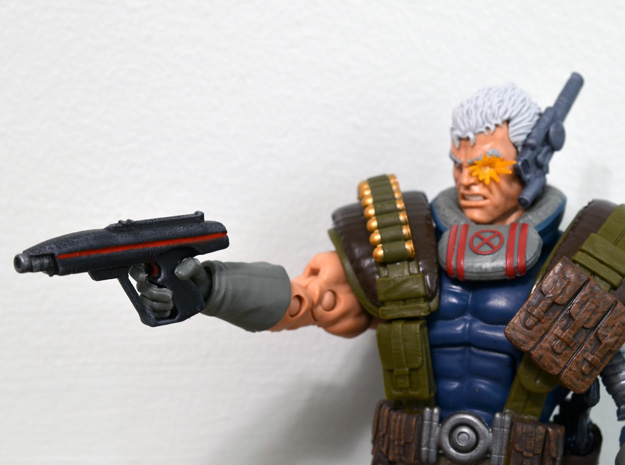 Next up by request are some classic toy blasters. First is the iconic vintage Lazer Tag pistol, which fits larger figures like Cable really well. The grip on this one is real chunky, so I’ll be offering a smaller version for more regular-proportioned 6″ figures soon.