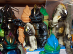 New shelves! The Real X Head has all been rearranged again to show off all the Chaoses, and I got some more ro-butts back into the mix. No real room for Iron Man tho… also redid the Neo Eyezons and Glyos stuff, but that’s still in progress. I’m still not happy with the top shelf either. It’s mostly spillover right now from re-doing the standard-sized vinyl shelf. I un-segregated the Max Toy Co stuff, and put all the heroes in the center, surrounded by my favorite of the standard kaiju. The 3A stuff is all destined to be re-arranged as well, as 3A shipping-magedon should be starting soon, and lasting most of the summer from what I understand. Hence no shots of the 1/6 stuff either.