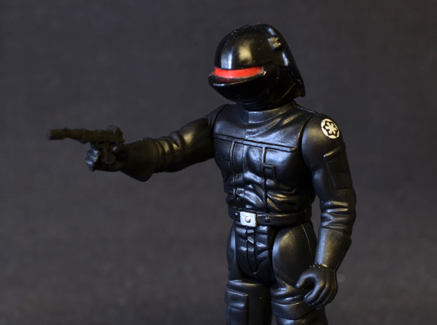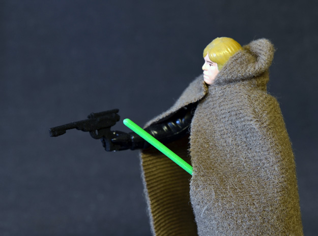 There are a number of new items available now in the PRHI Shapeways Shop. You can now complete your vintage Kenner Star Wars figures with some 3D printed weapons! The PRHI Kenner replacement weapon series is available in multiple colors of polished Strong Flexible plastics and grey metallic plastic. Each gun comes as a sprue of four, and each weapon is marked with a ‘R’ molded into the handles for easy identification. The first series is available now, with more on the way. Check after the fold for a link to each, or check out the PRHI Shapeways Shop for a whole selection of 3D printed toy accessories, now revamped with better organization and categories.