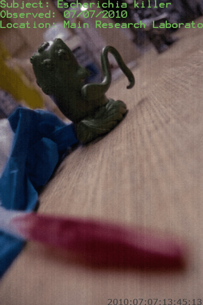 At this point the guard was able to observe the creature examining its surroundings, including improperly disposed waste from a previous experiment.