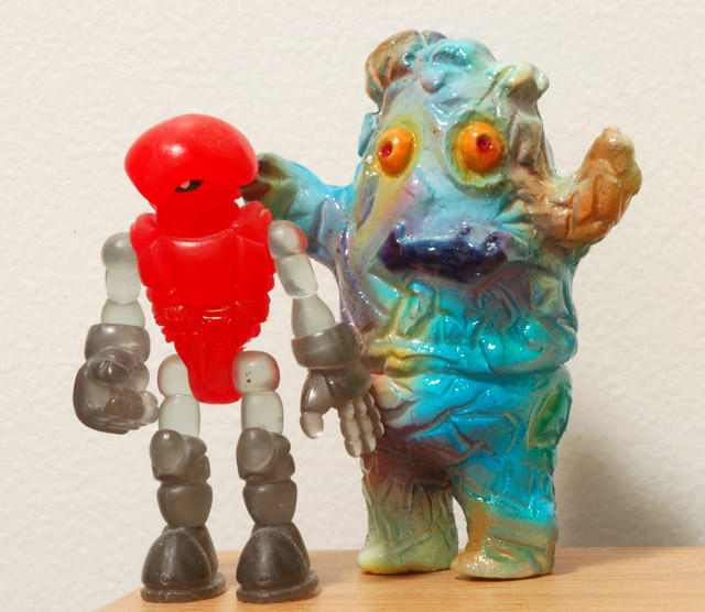 I also picked up this awesome little resin by Dustin Nakagawa, named Gamusa. He’s clearly inspired by Zollmen’s Zudon, but has some differences that make him stand out, and is a perfectly sized and shaped little resin buddy. I also worked on a blank Gamusa that I will post up when I finish.
