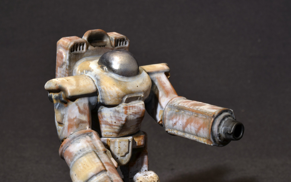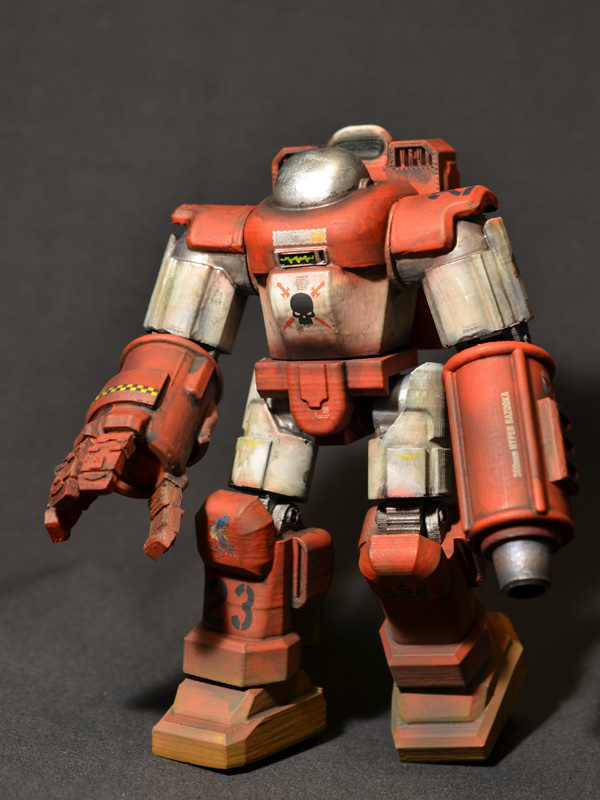 The Tenacious Toys and Monster Kolor Custom Toy Show opens at P!Q in Grand Central Terminal NYC tonight. The theme of the show was toys painted with Monster Kolor paints, and what would an MK show be without some real type, flat finish, weathered 3D printed mecha action? I was asked to participate and couldn’t say no. I was pretty short on time, but I was able to dig into my stash and piece together one last classic 1/12 scale Bounce Tortoise, the last of its kind. This Tortoise is from Brute Squad, featuring a red and white scheme where I tried some new tricks for adding color variation while applying the main colors, and a new acrylic wash mix that I’m pretty pleased with. The other thing I tried on this guy was to skip my usual chipping step. All the weathering here is a combination of airbrushed fading, color modulation, and washes. I’m pretty pleased with the results, and hope to see some great pics of the last Bounce Tortoise making its debut at the opening tonight!