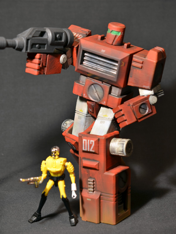 Head on over to to DoomKick.com on Friday night, August 1st at 9 PM EST to pick up some 3D printed, Monster Kolor painted mecha toy goodness. Myself, Bronnoize, and Mecha Zone have teamed up with our pal Jesse to have him paint and release some figures from each of our respective lines, and they look great. Jesse even came up with names and backstories for the whole collaboration, titled Rampaging Robots! Read on for each, pulled from DK’s post over on DoomKick. The toys will be $25 each, with US shipping included.