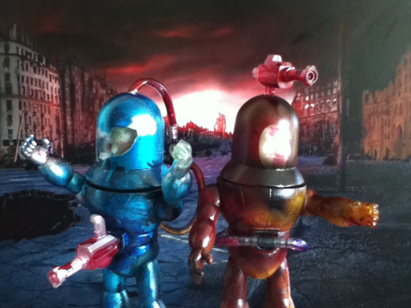 These bad boys were part of veteran Cosmic Squadron painted by Dead Pre$idents for the Kaiju Bazaar show at Doubple Punch. More pics to follow, but here’s a shot of Troopers Gary “Heat Death” and Steve “Infernus” on patrol.