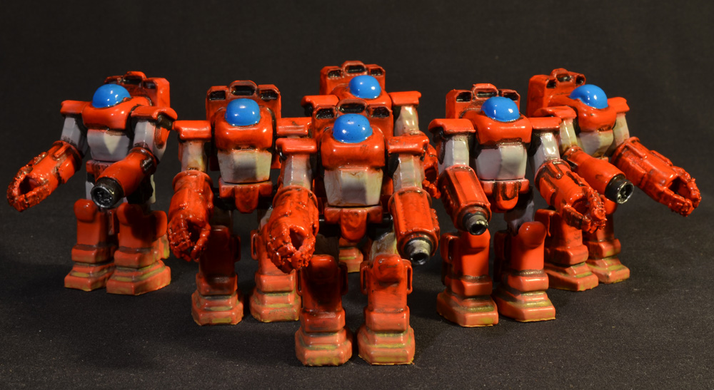 Here’s a trio of micro scale PRHI figures that were released at Future Factory. These guys are in some tried and true vintage Real Type colors, complete with red trim and details. I think there’s going to be more of this scheme on the larger figures in the near future! One of these guys is still available on the Monster Kolor Future Factory Store.