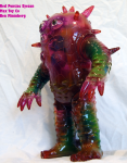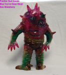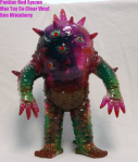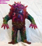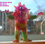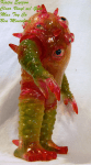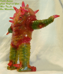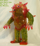 I finished this latest Kaiju Eyezon over the weekend and snapped some nice bright pictures today. The goal for this figure was to change it up from the earthy potato palette of the first two Eyezons, and go with some much brighter colors, and a much greater emphasis on the clear and the visible guts. I’m really happy with how this one came out… the colors have a great deal more subtlety than my other figures, with many layers, while still retaining a surprising amount of clarity. The silhouette of the guts can be made out with the figure in your hands, and up against the light, this figure goes up like a Christmas tree. I cleaned off a few critical spots of paint so that the guts could really be seen in-hand.
