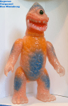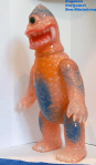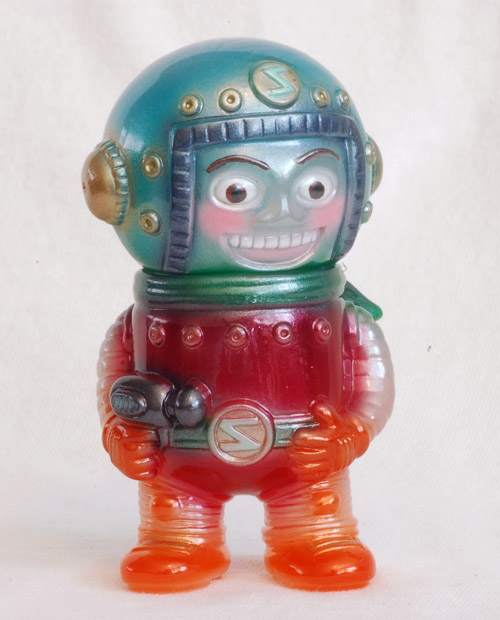 Gargamel is one of the leading Japanese vinyl manufacturers, with their most recognizable design arguably being the Zagoran. Zagoran was a bootleg vintage design, from what I understand, brought back into popularity by Gargamel, in part due to how easily his simple and friendly design lent itself to custom paint jobs. Some collectors spend their entire career hunting Zagorans, never to have them all, but all of them looking amazing. This custom is done on a clear blank, which I believe was for a custom contest a few years back, similar to the BlobPus blob I recently did for a current contest. I wanted to try painting the figure from the inside, since I really like the figure and wanted to be able to still handle it and play with it afterward without worrying about damaging the custom paint. I kept the paint scheme simple, and found that painting figures from the inside is hugely difficult… I had some problems with the paint sticking, and then beading up, as well as running, as evident in a few places, but overall I’m happy with how the figure came out. I picked ‘friendly’ colors, similar to a Hawaii scheme. The lips and mouth and eye were painted from the outside.
