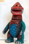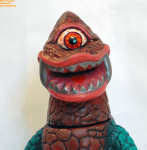 Gargamel is pretty much the single biggest and most prolific of the Japanese vinyl companies, and their most recognizable figure is the Zagoran, based on a vintage bootleg toy. There are Standard Sized, Mini, Crouching, Pocket, and now Micro Zags, enough for everyone to love one. There are mini releases of many of the popular sculpts in true-blue vinyl, intended for customizing. I went back and forth with my little Zag trying to decide what to do… finally I settled on a low-saturation color palette, contrasting with the bright and wild-colored production releases. Initially the figure was all sprayed, but I really wanted to bring out all the fantastic texture and scale detail in the sculpt, so a wash and some drybrushing later I have a very well-textured cute little Zag. I spent some time thinking about how to do the eye as well, and settled on some more color to ‘pop’ against the muted body color. The mini Zag just has such a fun face!