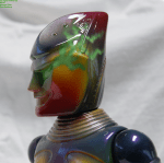 I painted a new Gigantor-colored Bigaro for a friend, and had extra paints left over. I tried some new tricks to get a really shiny metallic candy-coat, including throwing on nice thick coats of Future and immediately hitting the figure with a hairdryer to really cure the Future in place as shiny and smooth as possible. It came out really great on the Bigaro, so I decided to use the rest of the paint on a flesh blank M1GO mini U-tom I had lying around. I’m really pleased with how both of them came out, and think Dan from CollectionDX will be thrilled with the Bigaro!