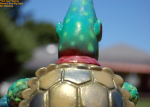 Kaiju Big Battel is an awesome idea. Dudes dress up in kaiju costumes of their own design and duke it out live on stage. A few of the more popular creatures have been made into figures, courtesy of Marmit. The Big Battel figures have the ‘fun’ factor turned up to 11, and are really creative designs that make pretty sweet figures. Vegetius here is a giant turtle, but not the coolest figure. His giant pointy head and little stubby arms make him silly looking, but not as much fun as an actual toy. The design is still really interesting, and proved really fun to paint. If you’re looking for a Vegetius, look no further than CollectionDX! Josh Bernard’s killer Nor’easter colorway is still available in limited quantities, and features squishy blue vinyl with glitter embedded in it, and a great cold-themed paint job.