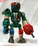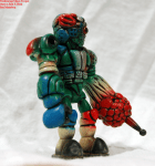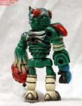 The Bigaos is a rarely-seen combination of the Chaos body and Bigaro head, created by Akro-kaiser and the evil Mutants. I always liked the heavily-armored looking Bigaos combination, and made my own from beige flesh blanks. I wanted to emphasize the heavy-duty feel I get from the figure, so I painted it closer to a war-machine than a living mutant, with camouflage and weathering. This also gave me a light-weight opportunity to try free-handing camo on a figure before crossing that over to tank painting, and I’m pretty pleased with how it came out.
