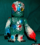 I love the paint work and figure, but could never afford the vintage figure. Somehow I thought the Real X Head Gatchigon sculpt kinda, sorta, maybe reminded me of the Guiro Seijin, so I decided to see how the Gatchigon would look in these colors… the end results came out really neat, even if I feel like I cannot have been the first person to think of this custom. This guy was fun to paint; the loose spray vintage style was very different from the tight and detailed spray work I usually do.