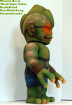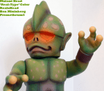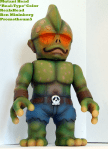 Mutant Head is the first of the Mutant line from RealxHead, and the second figure Mori released. There have been countless colorways of Head since his debut, but I always wanted one that would really nail down the ‘look’ of the character, as if it were in a comic or such. At the East Coast Chogokin Summit, Onell/Glyos mastermind Matt Doughty was looking some of the other customs I had brought, when he informed me that he was making another trip to Japan and China to visit some friends and his factory, and that I should paint a custom figure for Mori as a gift, as Matt and Mori are personal friends and have begun to collaborate on projects. The idea of painting a figure for the creator of one of the vinyl designs I love was daunting, and I had to really hunker down and think of something appropriate, which is where the ‘Real-type’ Head came into play. I knew he needed to be green and goblin-ey, as that’s always how I’ve see Mutant Head, and I knew that I liked the faded denim shorts look I used on my Zombie Chaosman. I still had the friendly Hawaii-esque pink from my Zagoran custom, and decided to use that as the trim/spot color to keep Head from looking scary. The last challenge was deciding what to do with the eyes, which are unique and a little weird. I wanted to avoid them looking scary without painting in some kind of goofy looking eyes in there, so I opted for a gentle orange glow. I really hope that Mori likes the figure when he gets it, and knows how much I enjoy his figures!