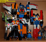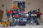 This is more of a ‘blog’ post than a display post, but I figured I’d throw it up here for people to see. I am a through and through TF fan and remember watching G2 on the TV. Fast forward 10 or 15 years, and now I’m into the hard stuff- Japanese G1. I got hooked up with a guy who helped me grab many of the easy to find stuff like Star Saber, Vic Leo, and Overlord for decent prices, and even found a Dai Atlas for cheap, and then overpaid for a boxed Sonic Bomber, but there was one sneaky bastard that eluded me: Roadfire C-349. On the TF wiki page, the caption under the picture of Roadfire reads “You’ll never own me”, and I took that as a challenge. RF’s not necessarily the most expensive G1 TF by a long shot, but damned if he’s not just about the rarest. Right when I was getting into the good stuff, I lost a loose incomplete broken RF for a whole bunch of money on ebay, and then did not see another one for almost a full year. Cut to about two weeks ago, and after a big binge of older super robot stuff on YHJ, I thought to myself ‘I should check ebay again for Roadfire…’ and there it was: boxed complete with unapplied stickers and some moderate yellowing. I had to have it… fortunately for me, the same seller was unloading a metric ton of good looking G1 stuff including other Japanese items, and it seemed to distract the competition, because I won RF for significantly less than my max bid with little competition in the critical last 5 minutes. The bugger showed up the other day, and I was in heaven… Reprolabels are in the air, and I’m going to look into the hydrogen peroxide method for the yellowing… here’s some love shots of the Zone base all setup (missing Sonic Bomber’s Micromaster… one more elusive piece of the set) and a shot of the three Powered Masters together, and a box pic of my JP G1 stuff so far.