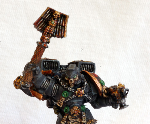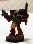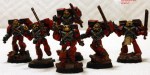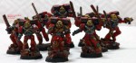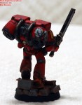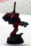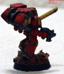 This is a squad of Blood Angels Assault Marines I finished not too long ago for my Warhammer 40k army. For those of you that might not know much about Warhammer 40k, Space Marines are genetically engineered super soldiers, and the Blood Angels are some of the fiercest fighters among them. I try to aim for a more realistic battle-hardened look to my minis, and these guys were the first group to receive some new ideas I’d gotten from my work on larger scale models. These are plastic models, except for the Sergeant, who is metal, and all of them have some GreenStuff putty details added, mostly from press-molds of details I made from other models.